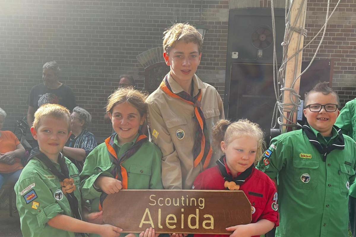 Groepsbegeleider Lukas van Mil van de Scouting Tono-groep en groepsvoorzitster Yolanda van Looijen van de Scouting Taizé-groep tekenen de intentieverklaring namens de groepsraden van de beide scoutinggroepen.